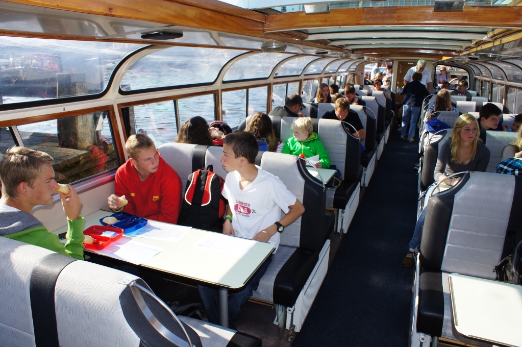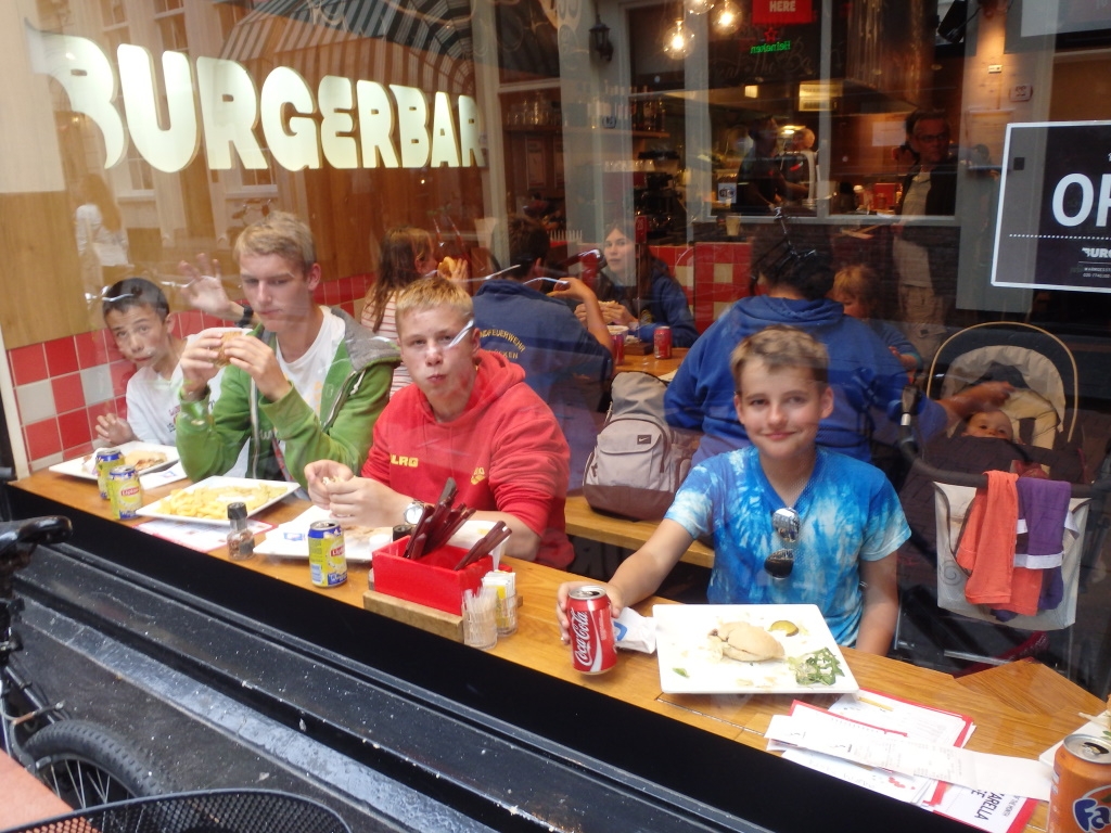 Unser Tag begann heute SEHR früh. Schon um 6.00 Uhr morgens mussten wir zum Frühstück erscheinen, denn heute hatten wir etwas ganz besonderes vor: es ging nach Amsterdam. Nachdem wir alle gefrühstückt und Lunchpakete gepackt hatten, ging es um kurz nach sieben auch schon los in Richtung der holländischen Hauptstadt. Nach der fast eineinhalbstündigen Fahrt stellten wir die Fahrzeuge an einem Park&Ride Parkplatz ab und stiegen in einen Bus, der uns direkt in das Stadtzentrum brachte. Wie es sich für eine gute Touristengruppe gehört, starteten wir den Tag in Amsterdam mit einer Grachtenfahrt. Während der einstündigen Schifffahrt (ohne Segel :O) konnten wir unter anderem den Amsterdamer Hafen, die alten, schönen Speicherhäuser, das Anne Frank-Haus und viele andere Sehenswürdigkeiten von Amsterdam vom Wasser aus bewundern. Anschließend ging es direkt mit dem nächsten Programmpunkt weiter. Nach einem kurzen Fußmarsch erreichten wir das naturwissenschaftliche Zentrum Nemo. Ähnlich wie Schloss Freudenberg, das Mathematikum oder Experimenta kann man dort einiges über wissenschaftliche Technologien durch kleine „Stationen“ erfahren. Dabei war es strengstens geboten, alles anzufassen und auszuprobieren. Nach einer spannenden Zeit des Experimentierens, Erforschens und Entdeckens verblieb noch genug Zeit, die Stadt in Kleingruppen vollends zu erkunden. Zum Abschluss ging es noch zum gemeinsamen Burgeressen in der Burgerbar. Diese waren frisch zubereitet verdammt lecker!